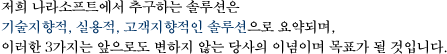나라소프트는 어느 국가에서든지 반드시 필요할 수 밖에없는 다양한 솔루션 기술을 전세계 100여개 국가 이상에 공급하겠다는 야망과 포부를 가지고 고객지향적 솔루션의 글로벌 기업을 목표로 끊임없이 질주할것을 약속 드립니다.