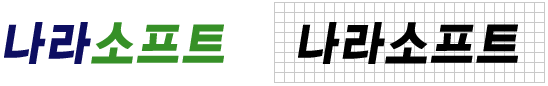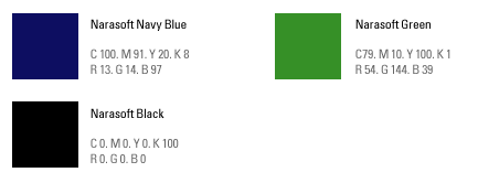 군청색은 진취적인 나라소프트의 정신을 상징하며 녹색은 신뢰를 상징합니다.